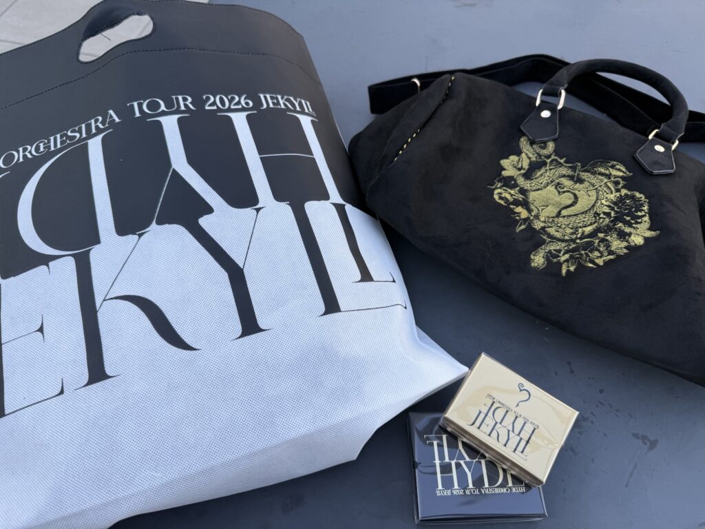 ▼購入したもの、HYDEサインネックレス、ピアス、ミニボストンバック(写真3枚目右上)、ショッパー(写真3枚目左)