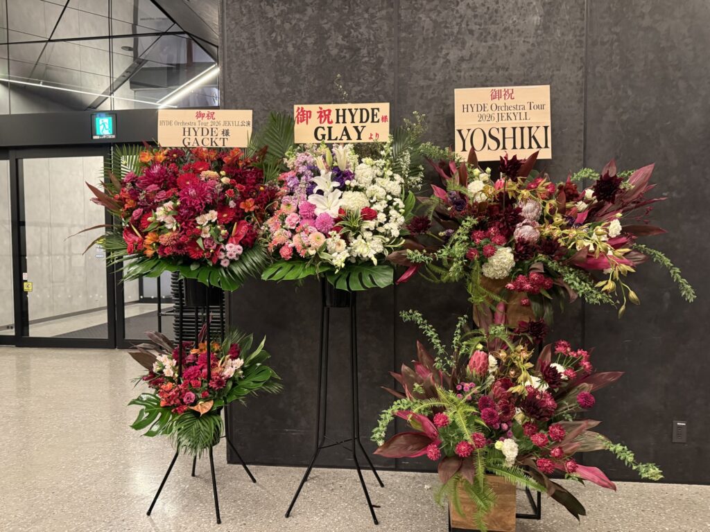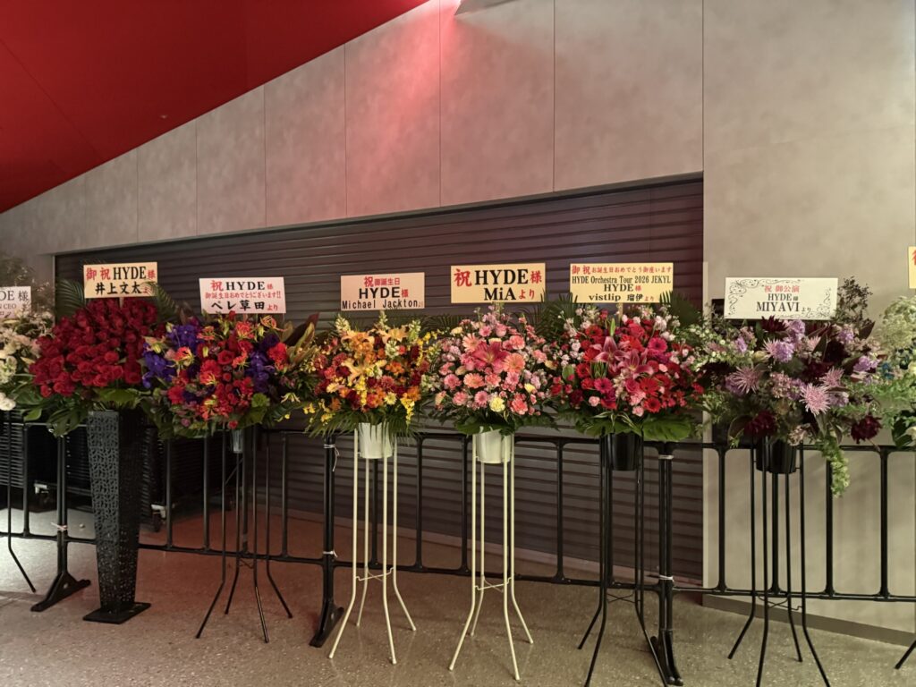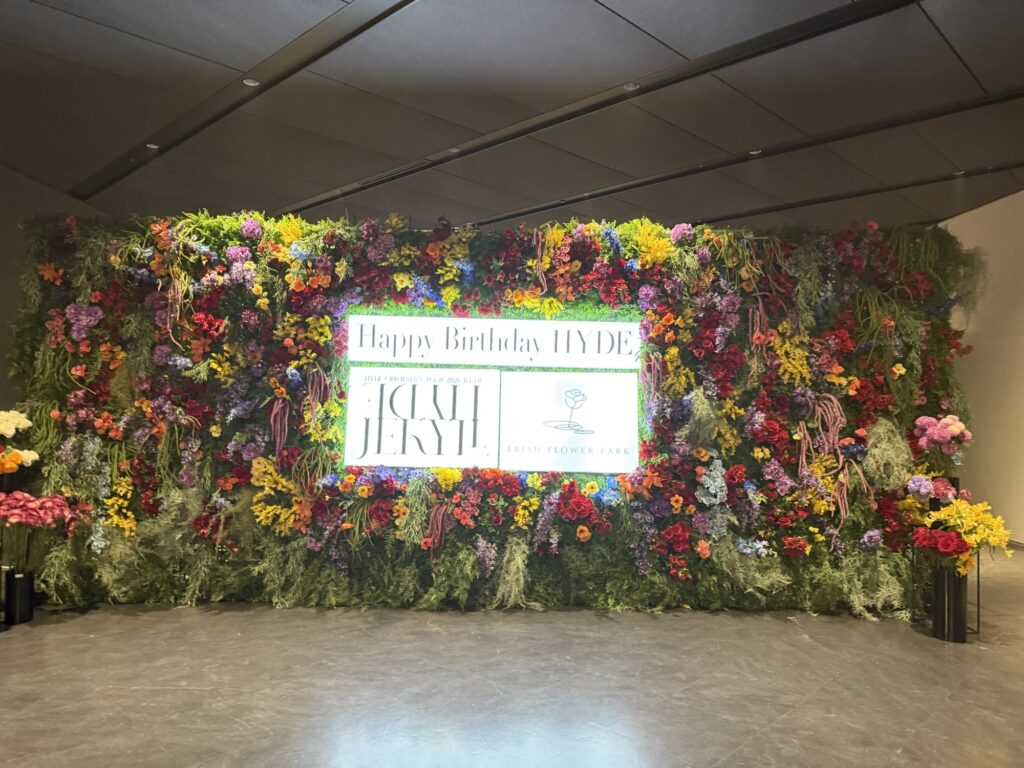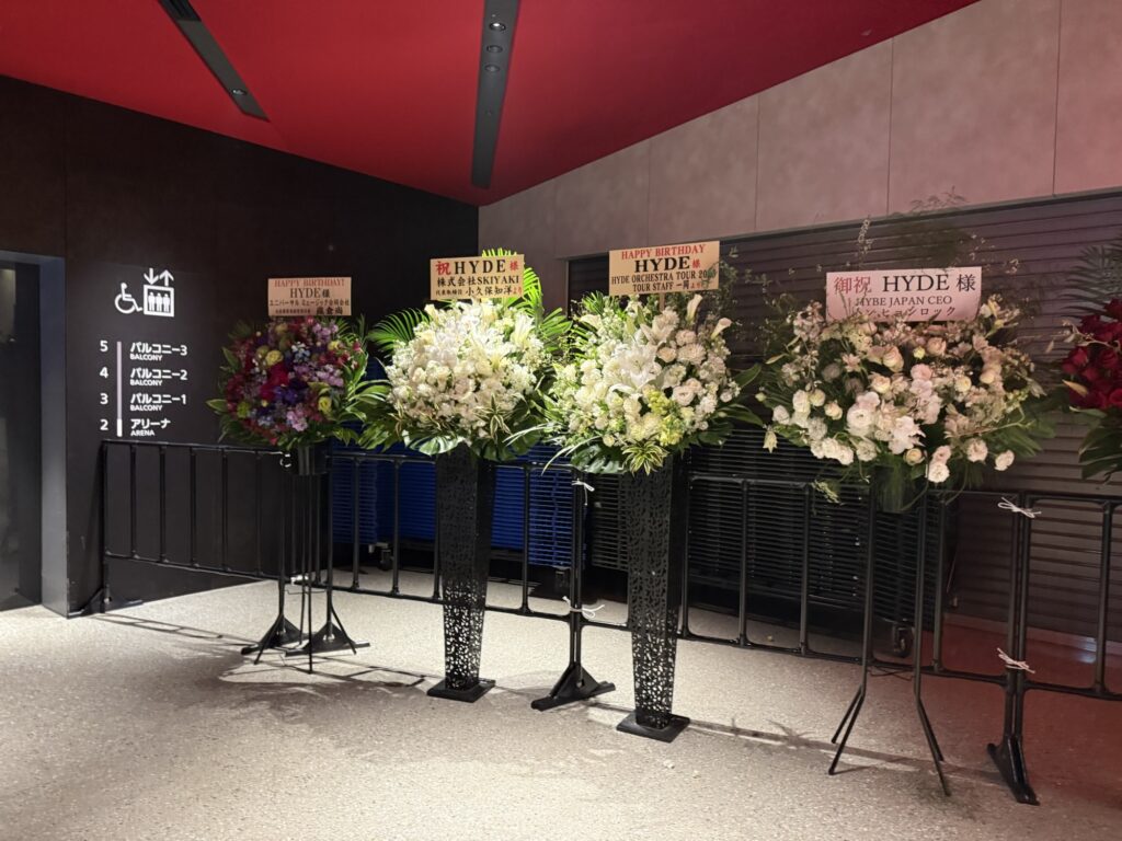 お寿司も食べ終わったところでいよいよお目当てのLIVEです。会場に所狭しと並べられた花、花、花…。HYDEさんが愛されているのがよくわかります。