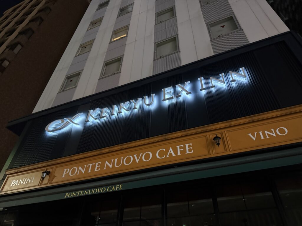 歩いて15分ほどで予約しているホテル「京急EX東銀座」に到着しました。最寄り駅から徒歩2分ほどと見たんですが、きっと乗った電車が違ったんですね…本当に迷いに迷いました。