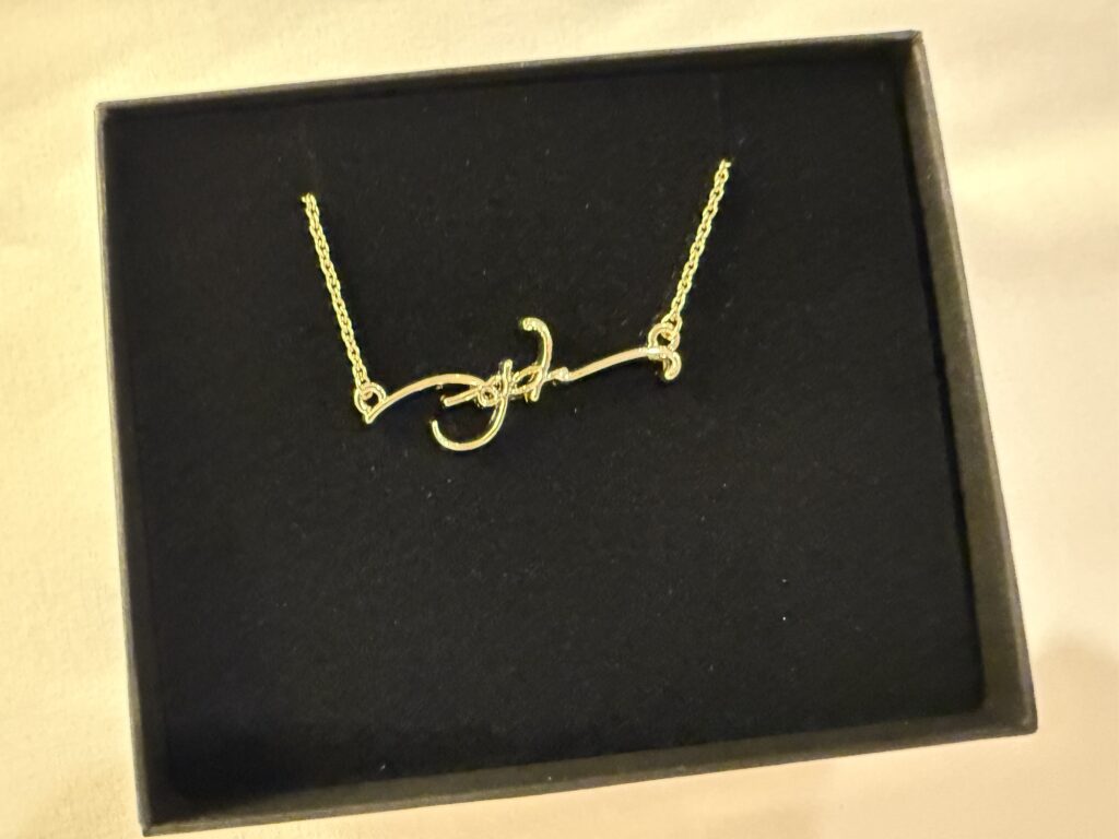 アクセサリーが好きなので、サインネックレスとピアス嬉しい!!とてもきれいです。