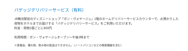 ▼公式のバゲッジデリバリーサービス。800円と半額。(いいんだよ)